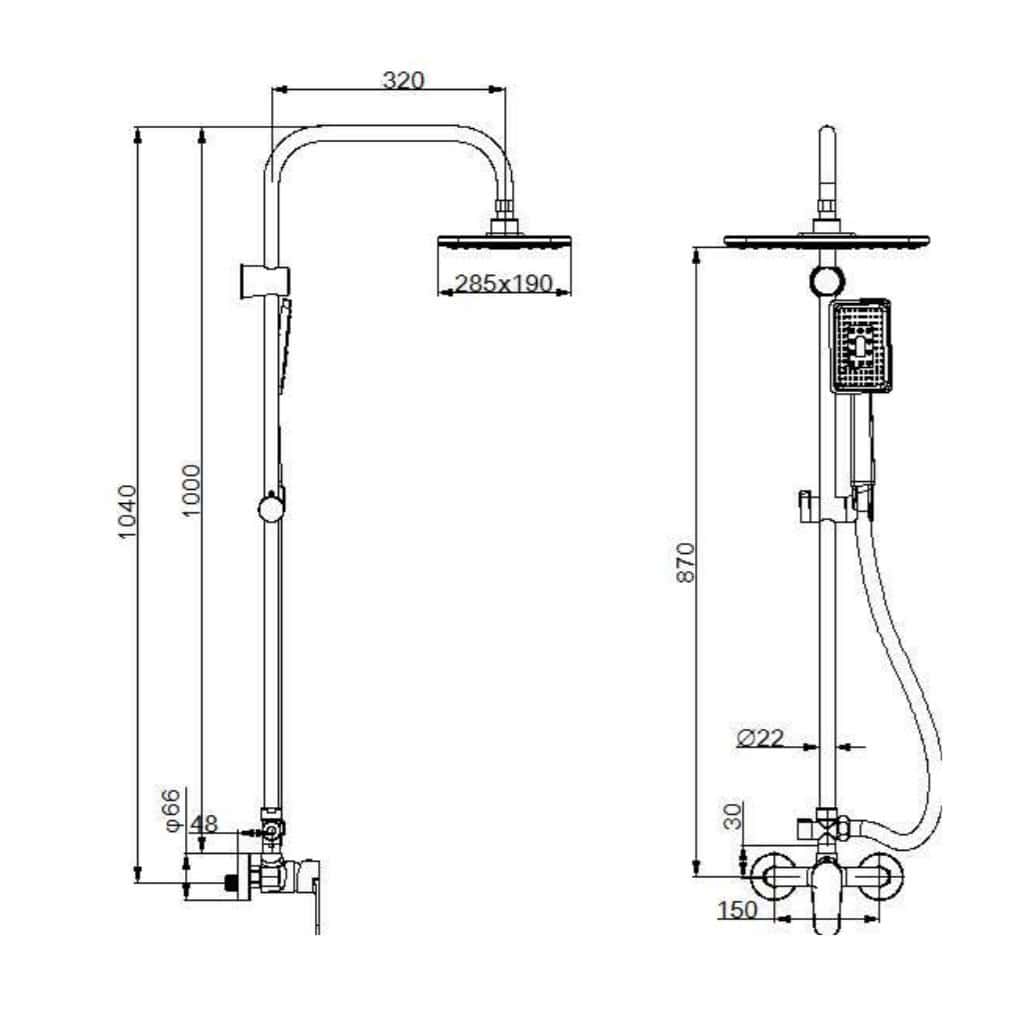 Baterie de dus cu bara fixa monocomanda crom Luca 14430