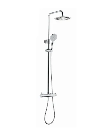 Coloană de duș fixă Boet LUCA, finisaj crom elegant, cu bară fixă, baterie monocomandă, furtun și para cu autocurățare. Cartuș ceramic Ø35 mm, presiune recomandată 1–5 bar, ideală pentru băi moderne, fabricată în Spania.
