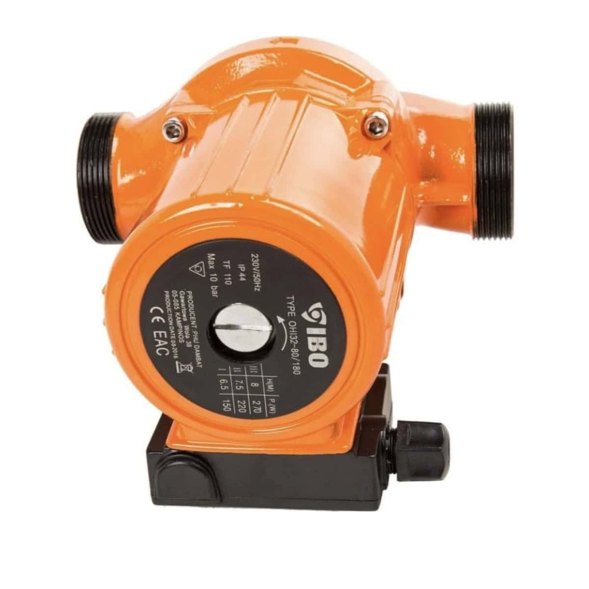 Pompa de recirculare OHI 32-80/180 IBO, cu putere 230V, debit maxim 160 l/min și înălțime de ridicare 8 m.