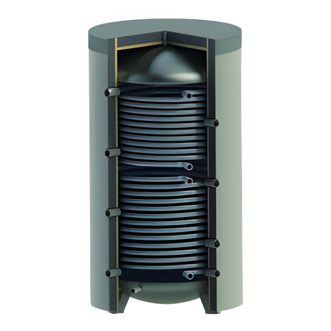 Pufferul de 2000L izolat cu două serpentine – una metalică și una din inox – de la Termo+, este ideal pentru sistemele termice cu cerințe ridicate de eficiență. Potrivit atât pentru aplicații rezidențiale, cât și comerciale, acest model oferă flexibilitate în integrarea surselor de energie.