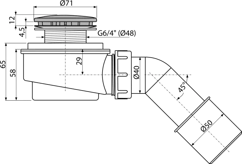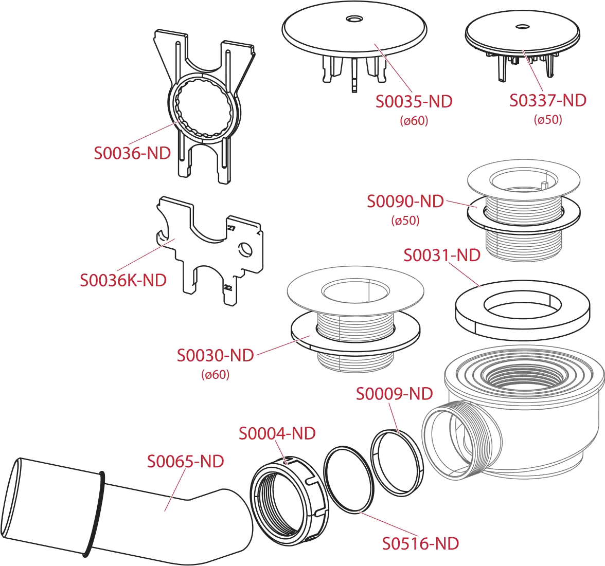 - Pentru cădițe de duș cu evacuare de Ø60 mm
